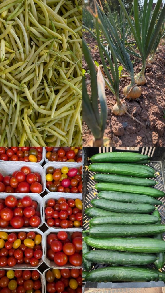 Außerdem gibt es noch Gurken, Zwiebeln und weiteres frisches Gemüse aus eigenem Anbau.